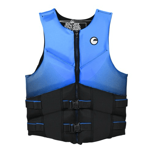 The Connelly Premium NEO CGA vest offers a sleek, comfortable fit with a 3D cut and segmented panels for exceptional flexibility. Certified as a Harmonized Approval PFD, it features superior drainability, oversized armholes, and a front zip for easy entry and maximum mobility. Belt keepers keep straps tucked away, enhancing comfort and performance on the water.