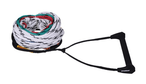 Elevate your water skiing game with the LAZER Package. Featuring a 12" handle with a premium tacky rubber grip and soft TPU end caps, this package offers superior comfort and safety. The zero-stretch Spectra Fusion handle ensures a consistent pull, while the 16/64 strand Poly-Pro construction with length indicators provides precision. Choose between straight or radius handles. Perfect for skiers seeking ultimate control.